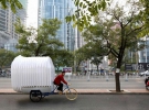 В Китае на выставке под названием "Стать громче" дизайнеры представили концепцию передвижного дома на колесах велосипеда.