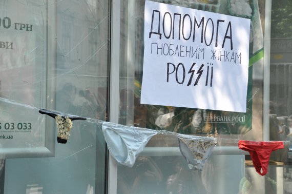 "Нам очень жаль российских женщин. Мы же прекрасно знаем, как важно для женщины носить хорошое, соблазнительное белье, а не хлопчатобумажные трусы. Или трусы с начесом. Мы поддерживаем и выражаем свою солидарность с "русскими красавицами", которыем нечем соблазнять своих мужчин. Через российский банк мы передадим все собранное белье в Россию. Возможно, потому их мужья такие злые и уходят от своих женщин на войну. Отдельный комплект мы передаем и Алине Кабаевой для возбуждения Владимира Владимировича. Пусть знают, что бандеровки такорж умеют сочувствовать", - говорит одна из организаторов акции Галина Мороз.