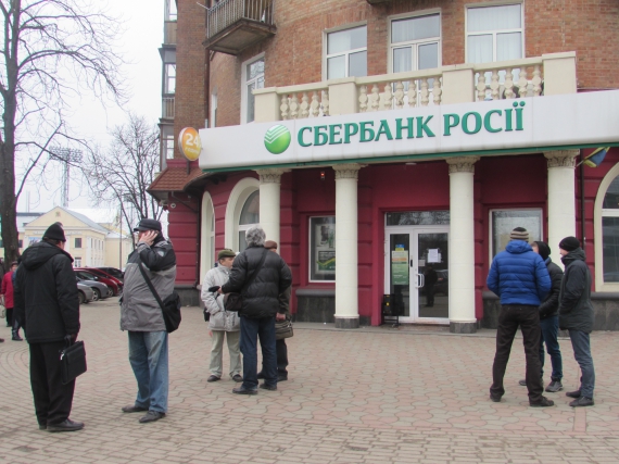 Сегодня, 29 февраля, по улице Октябрьской вблизи Полтавской облгосадминистрации видбуалсь акция протеста о деятельности российских банков на территории страны. "Сберабанк" России облили томатным соком.