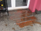 Несколько десятков активистов ограничились демонстрацией плакатов и символическим разливом жидкости красного цвета возле центрального входа в российского банка.