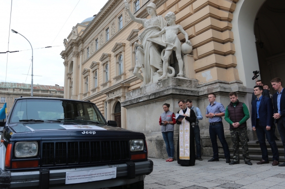 "Автомобиль поедет на границу между Днепропетровской и Донецкой областью, в 5-й батальон ДУК ПС. Средства собирали в течение нескольких месяцев от разнообразных акций. Еще раньше мы поняли, что народ устал собирать деньги в ящик, не наблюдая результата. Поэтому мы решили собирать средства разнообразными креативными акциями. Одним из них стал благотворительный аукцион "Шаг к победе". Участниками аукциона были выпускники нашего университета, которые предложили свои лоты. Ими стали певец Святослав Вакарчук,спортивный журналист Виктор Вацко, пресс-атташе национальной сборной по футболу Александр Гливинский. Позже к инициативе присоединились народные депутаты Борис Филатов и Дмитрий Ярош. За кобуру Яроша, которая спасла ему жизнь, выручили 55 тысяч. В целом во время аукциона собрали 64 тысячи гривен и 300 долларов. Это стало основной частью суммы, за которую купили и отремонтировали автомобиль. Также закупили запасные покрышки к нему и футболки бойцам. В будущем планируем продолжать подобные акции. Сейчас уже есть много желающих участвовать в подобных мероприятиях", - рассказывает Андрей Ткачук, руководитель Студенческого координационного центра поддержки АТЕ.