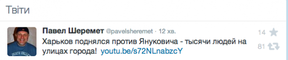 В Харькове народ восстал против Януковича. Об этом в своем Твиттере сообщил Павел Шеремет.