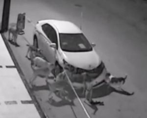 С видео камеры наблюдения видно, что голодные собаки практически на части разорвали припаркованные на обочине авто. Он принадлежал автомеханику местного автосервиса. Он и вызваны полицейские очень удивились, когда узнали, кто совершил это преступление.
