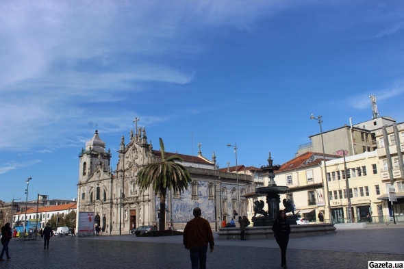 Церковь До Кармо. На площади возле нее - фонтан со львами.
