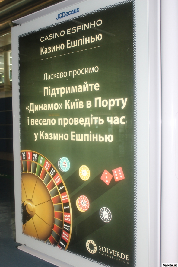 "Добро пожаловать" - в аэропорту одно из местных казино разместило свою рекламу на украинском языке с призывом весело провести время в их заведении.