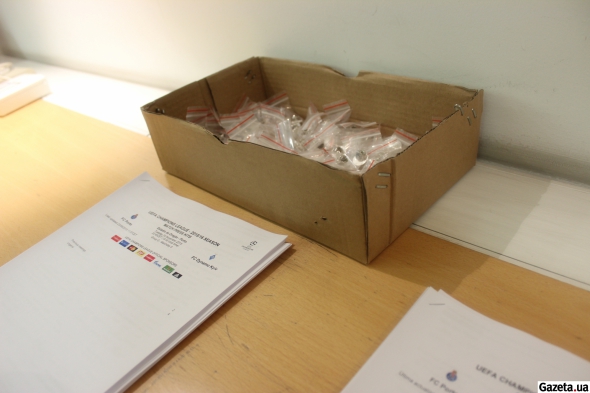 Плохая новость для коллекционеров. "Порту" не напечатал программок матча. Зато рядом с пресс-китами стояла коробка со значками Лиги чемпионов.