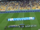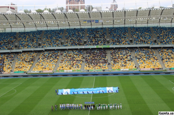 Матч начался с гимна Украины. Болельщики скандировали традиционные "Слава Украине - героям слава", "Слава нации - смерть врагам", "Украина - превыше всего", а также "Одна, единая, соборная Украина".