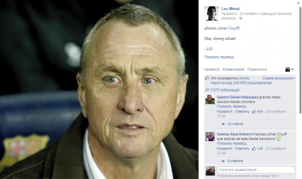"Оставайся сильным, Йохан", – написал Лео Месси в своем фейсбуке.