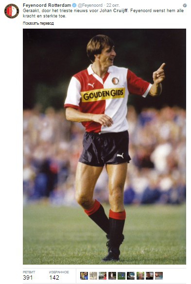 В "Фейеноорде", в котором Кройфф заканчивал игровую карьеру, тронуты грустной новостью и тоже желают Йохану быть сильным.