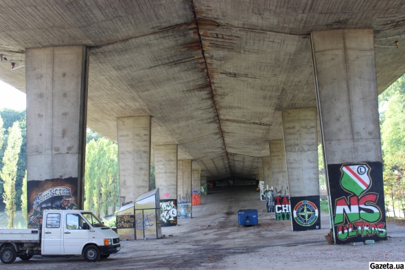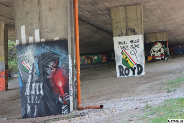 Красивые граффити по мотивам "Легии" на опорах моста возле арены