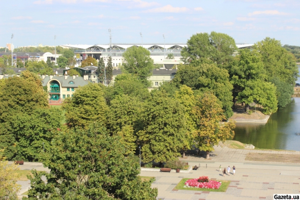 Вид на стадион Войска Польского имени маршала Йозефа Пилсудского из парка