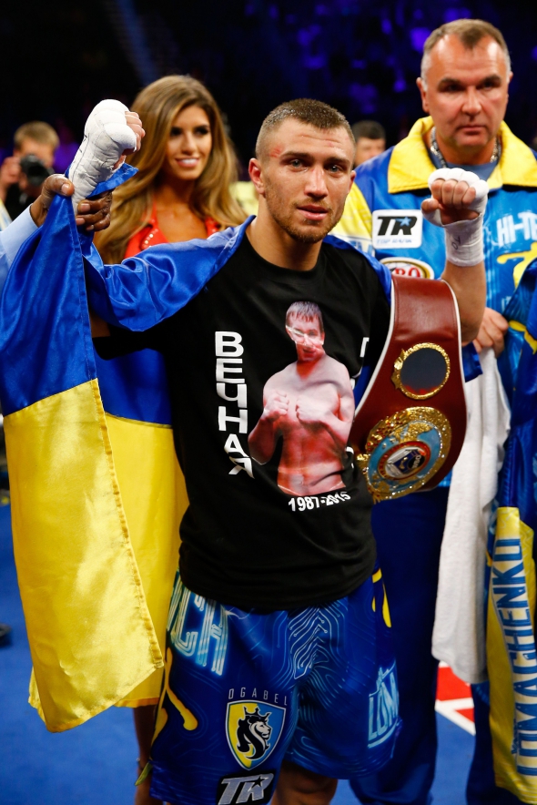 В Лас-Вегасе Василий Ломаченко защитил свое чемпионское звание по версии WBO. Украинец в девятом раунде нокаутировал Гамальера Родригеса из Пуэрто-Рико. После боя Ломаченко одел футболку с портрером и надписью "Вечная память".