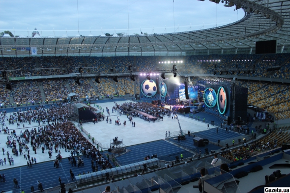 После вручения наград, речей, чемпионских селфи на "Олимпийском" начался концерт, который длился до полуночи. Открыл его Александр Пономарев, который исполнил гимн Украины.