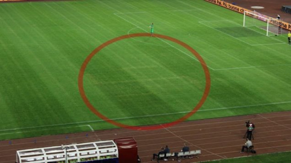 В перерыве сотрудники матча попытались убрать фашистский крест с газона, но за 15 минут эту задачу решить не удалось.