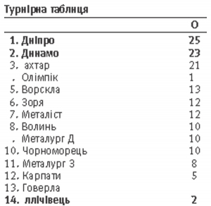 "Шахтер", Донецк - "Волынь", Луцк - 6:2; "Говерла", Ужгород - "Динамо", Киев - 0:4; "Днепр", Днепропетровск - "Черноморец", Одесса - 2:1; "Металлург", Запорожье - "Олимпик", Донецк - 2:2; "Ворскла", Полтава - "Металлист", Харьков - 0:0; "Металлург", Донецк - "Заря", Луганск - 0:0; "Карпаты", Львов - "Ильичевец", Мариуполь - 1:0