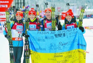 Украинские биатлонистки в субботу победили в эстафетной гонке на этапе Кубка мира в немецком Хохфильцене. На пьедестале почета выкрикнули: "За Майдан!". Русскому комментатору это очень не понравилось.