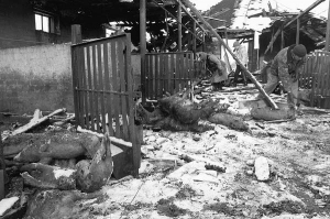 — Только на свиньях мы потеряли 500 тысяч. Чтобы отстроить помещение, надо еще миллион, — сквозь слезы говорит Людмила Климчук, 48 лет, главный зоотехник и жена владельца частно-арендного предприятия им. Войкова в поселке Михаил-Коцюбинское под Черниговом. - Сгорели 116 свиней. 26 свиноматок до 200 килограммов трупами лежат. И маленькие поросята с ними.