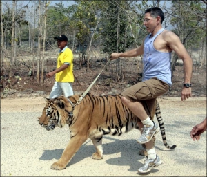 Несколько дней назад Ашрита попытался установить новый рекорд. Он проскакал на одной ноге 5 км меньше чем за 35 минут 19 секунд. Это почти на пять минут быстрее предыдущего рекордсмена. Для своей попытки Фурман выбрал город Канчанабури в Таиланде. А поскольку прыгал на территории Храма Тигра, то взял с собой хищника. Теперь специальная комиссия должна зарегистрировать его рекорд.