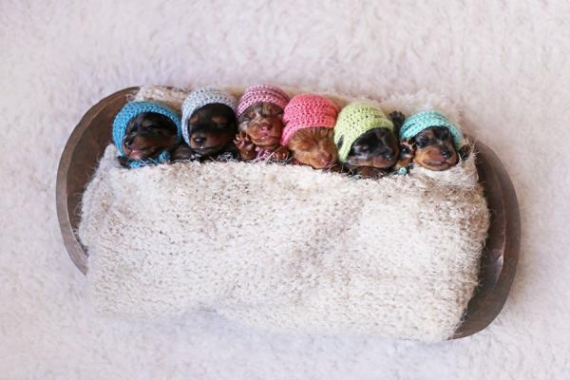 Фотограф не просто зробила знімки маленьких песиків, але ще також одягла на них милі шапочки. В них малюки виглядали просто незрівнянно.