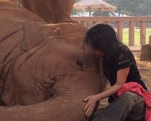 У Природному парку слонів в Таїланді слониха заснула під колискову доглядача.