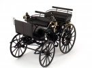 Через рік, 1886 року, світ побачив перший автомобіль Даймлера: 4-колісний екіпаж із бензиновим ДВЗ потужністю 1,5 к.с. і швидкістю 16 км/год. Його називали "каретою Даймлера". Її вважають однією із перших повноцінних машин.