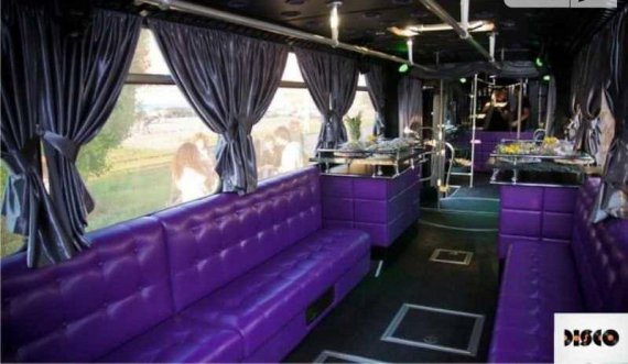 Боки розмальовані силуетами людей, які танцюють. Інтер'єр оформлений у стилі дискотеки з ефектною світломузикою, пусканням диму і барною стійкою.