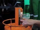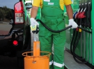 "Все пальне, що прибуває на заправку, перевіряється на вміст води", - каже директор заправного комплексу. Він бере спеціальний метрошток наносить на його кінець надчутливу до води пасту. Без контакту з рідинами вона має світло-коричневий колір. При контакті з водою змінює його на яскраво-рожевий. Анатолій Сухих для демонстрації експерименту наносить метрошток у відро із водою – паста на ньому стає яскраво-рожевою. Витирає метрошток, наносить знову пасту і вже занурює у резервуар із пальним. Після контакту з ним, паста залишається світло-коричневою, як і в оригінальному вигляді. "Отже, води, на щастя, в наших резервуарах немає".