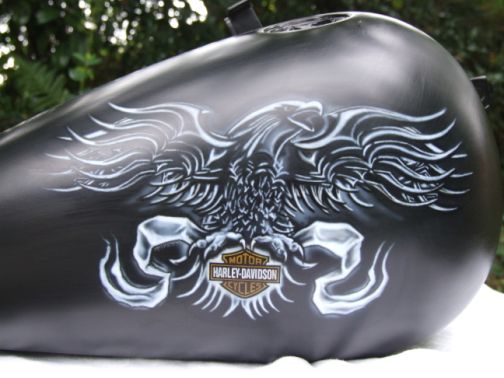 1933 рік. У покупців вперше з'являється можливість замовити графічний малюнок на баку у вигляді орла у стилі арт-деко. З цього часу стають популярними малюнки на баках мотоциків.