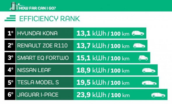 Фахівці випробували 6 авто. Першим у рейтингу опинився японський автомобіль Hyundai Kona Electric. Він показав найкращі результати.
