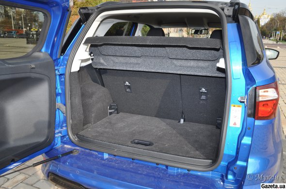 На відміну від попередньої версії EcoSport, на п'ятій дверці машини не закріплене запасне колесо. Хоча багажник, як і раніше, відчиняється не вгору, а вбік.