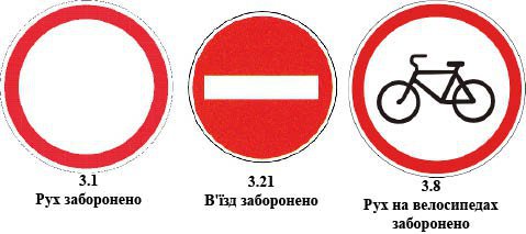 Знак 3.1 "Рух заборонено". Забороняє рух всім транспортним засобам, з умовами та оговорками, як і у попереднього знаку 3.8.