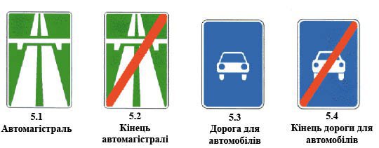 Знак 5.1 "Автомагістраль" і Знак 5.3 "Дорога для автомобілів"