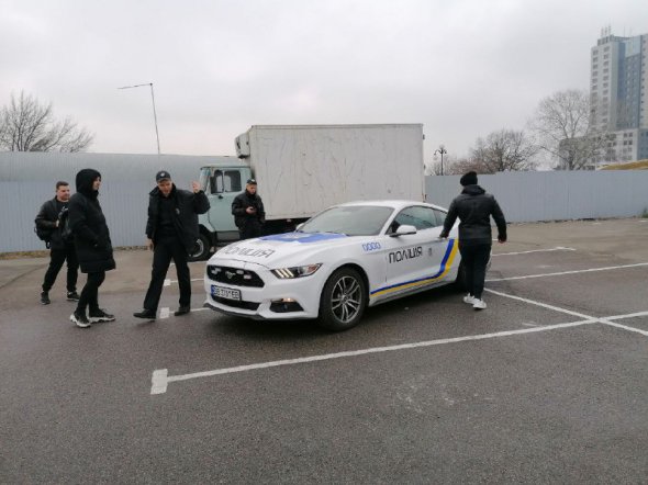 В Києві на Оболоні біля ТРЦ Dream Town патрульні затримали розфарбований, як автомобіль патрульної поліції Ford Mustang.