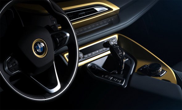 Золоте напилення використали і в дизайні салону. Ним покрили систему вентиляції, центральний тунель і логотип на кермі.