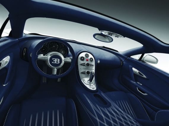 Другий з продемонстрованих "Вейронів", на базі родстера Grand Sport, має матово-білий колір, а деталі карбонового аеродинамічного пакету та колісні диски - яскраво-сині. Салон отримав прямо протилежне колірне рішення - він обшитий яскраво-синьою шкірою з білими акцентами (ряд сидінь, обробка рульового колеса і важеля КПП). Центральна консоль оформлена алюмінієм.