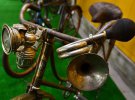 "Це велосипед на ручній тязі, зроблений для зовсім маленьких дітей. Дитина не впаде і не пораниться, бо принцип велосипедний збережений, але колеса закриті зверху металевою вставкою. Це витвір ризького заводу. Другого такого ніде не бачив. Придбали його за 50 доларів", – каже Ярослав. – Я також виставив кілька велосипедів зі своєї колекції. Зокрема, німецький гірський велосипед NSU-Opel 1938 року. Він цікавий тим, що вже у ті роки мав усі зручності відомі на сьогодні. В колекції також маю велосипед з дерев'яними колесами, якому більше 100 років. Це якраз був час, коли деревообробне ремесло вирвалося уперед і майстри навчилися згинати матеріал як завгодно. Зараз здається, що такі колеса важче зробити, ніж з металу. Тоді ж усе було навпаки".