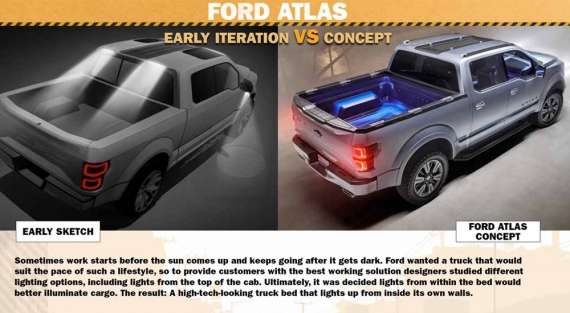 Що ж стосується дизайну оновленого сімейства, то його "перемалюють" з концепту Ford Atlas, який дебютував рівно рік тому.