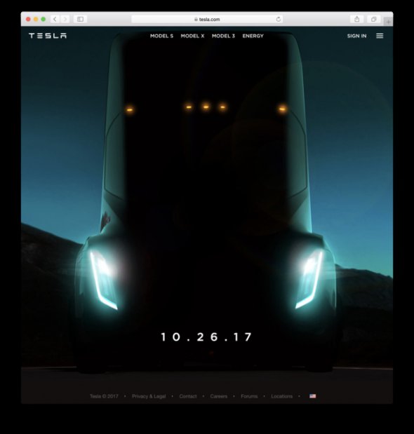 В інтернет виклали перші фото електровантажівки Tesla Semi. Її офіційно представлять 26 жовтня.