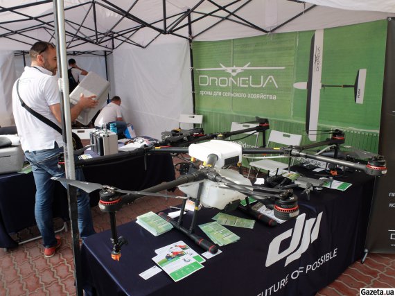 "Це - дрон-обприскувач Agras від компанії DJI, - розповідає Дмитро Довженко, представник компанії Drone.ua. - Технологія прийшла з Китаю. У них дуже багато маленьких полів і вони свої культури, зокрема рис, обприскують вручну. Для оптимізації робочого процесу придумали цей безпілотник.