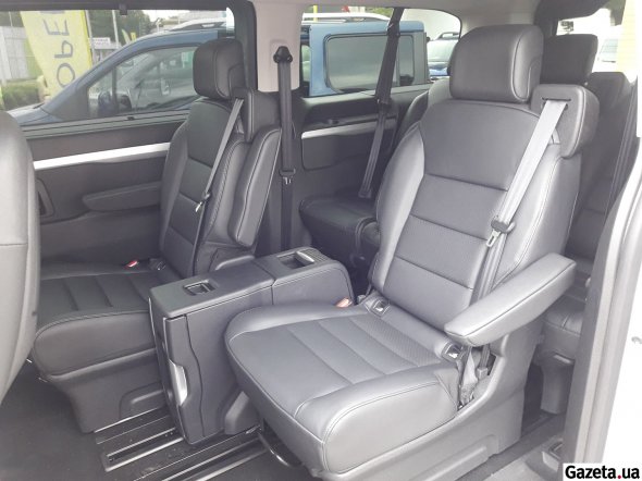 "Zafira Life — чудовий варіант для далеких сімейних подорожей. Третій ряд сидінь тут повноцінний — вдосталь місця для голови й для ніг. Автомобіль комплектують бічними дверима з електроприводом і от таким боксом між кріслами другого ряду. Його можна перетворити на стіл", - говорить Алла.