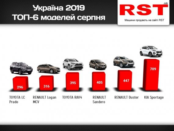 Найпопулярнішою маркою в Україні стала Renault. Їх зареєстрували близько 1,5 тис. Немалий попит був і на Toyota та Kia.