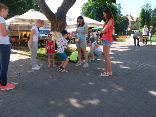 Вистачало забавок і для дітей. Для них організували багато ігор. Це - не дуже популярні зараз "Резинка" та "Класики".