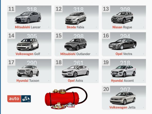 У 20 найпопулярніших потрапили легковики, частина з яких – "європейці". Вони обладнані двигунами з порівняно простими системами газорозподільного механізму йподання пального. Решта – окремі "американці" з двигунами великого об'єму.