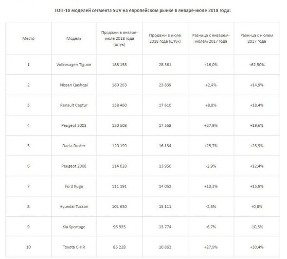 На 3-му місці опинилася модель французького бренду Renault - Captur. Продажі зросли на 8,8% і становлять 138,4 тис.