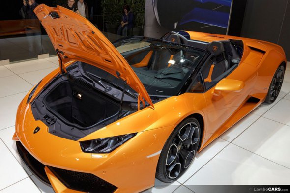 800-сильний суперавтомобіль зі середньомоторним компонуванням Lamborghini Huracán має невеликий простір під переднім капотом. Його обсяг - 70 л.