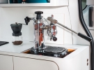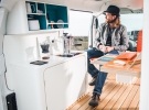 Усередині фургона розташовані повноцінне робоче місце зі столом, комп'ютер із сенсорним екраном, бездротовий інтернет, Bluetooth-аудіосистема, атмосферне світлодіодне підсвічування, контрольоване зі смартфона, бездротова зарядка для телефону, холодильник і кавомашина.