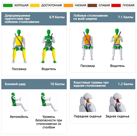 Загальна оцінка нової ТТ склала 4 зірки з 5 можливих. Новинка не змогла набрати максимальний бал, в тому числі з-за відсутності системи екстреного гальмування при неминучому зіткненні.