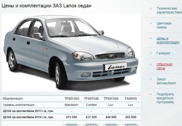 УкрЗАЗ опублікував прайс з новою ціною на колись найбюджетніший український автомобіль ЗАЗ Lanos. Зараз за вітчизняний автомобіль треба заплатити в середньому 240 тисяч гривень.