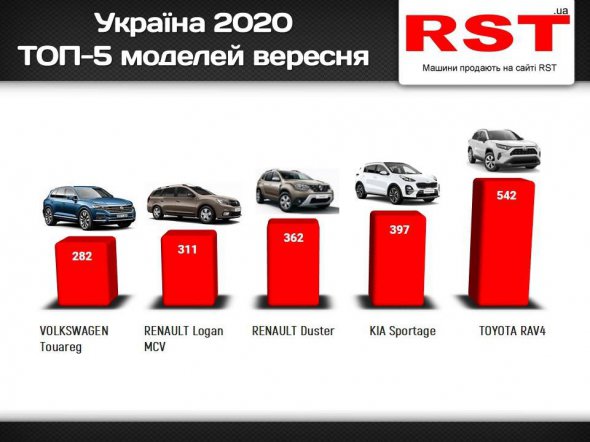 Упродовж вересня в Україні зареєстрували 7,5 тис. нових автомобілів. Загальна сума витрат на купівлю цих авто склала $210 млн. Рейтинг найпопулярніших авто вересня нещодавно опублікували на сайті з продажу автомобілів RST.ua.