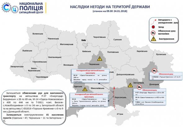 Сьогодні, 24 січня, для вантажного транспорту обмежили рух на автошляхах Донецької та Запорізької областей.
